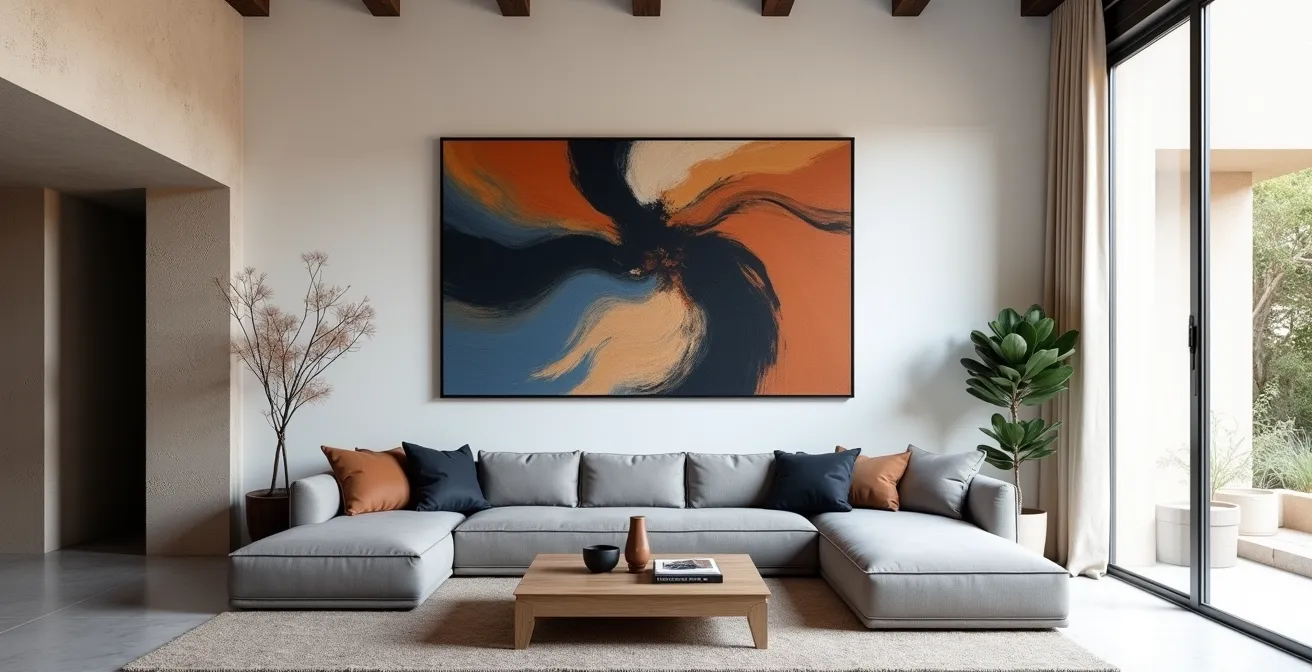 El secreto para acertar con un cuadro abstracto de gran formato no es buscar una pieza que «combine», sino una que inicie un diálogo visual estratégico con tu espacio.