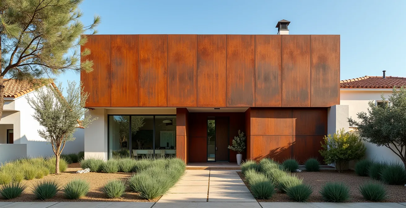 - ¿Con qué colores de fachada combina mejor el tono rojizo del acero corten?